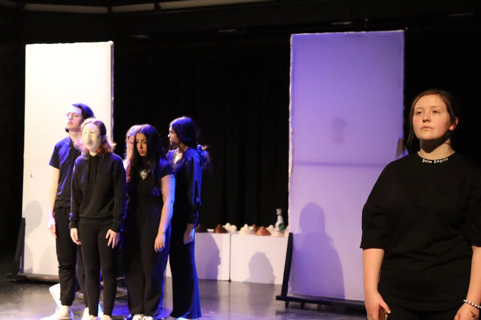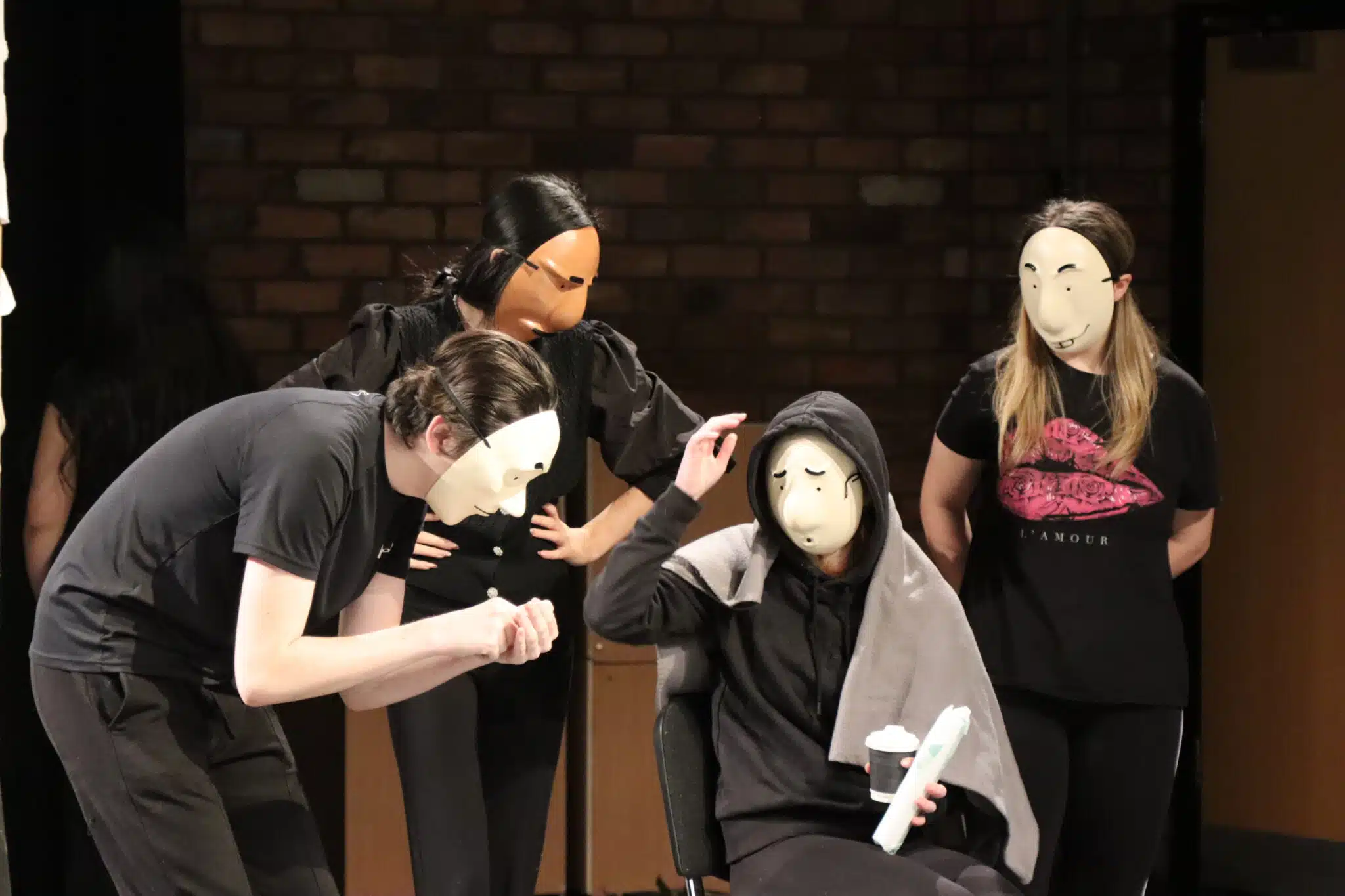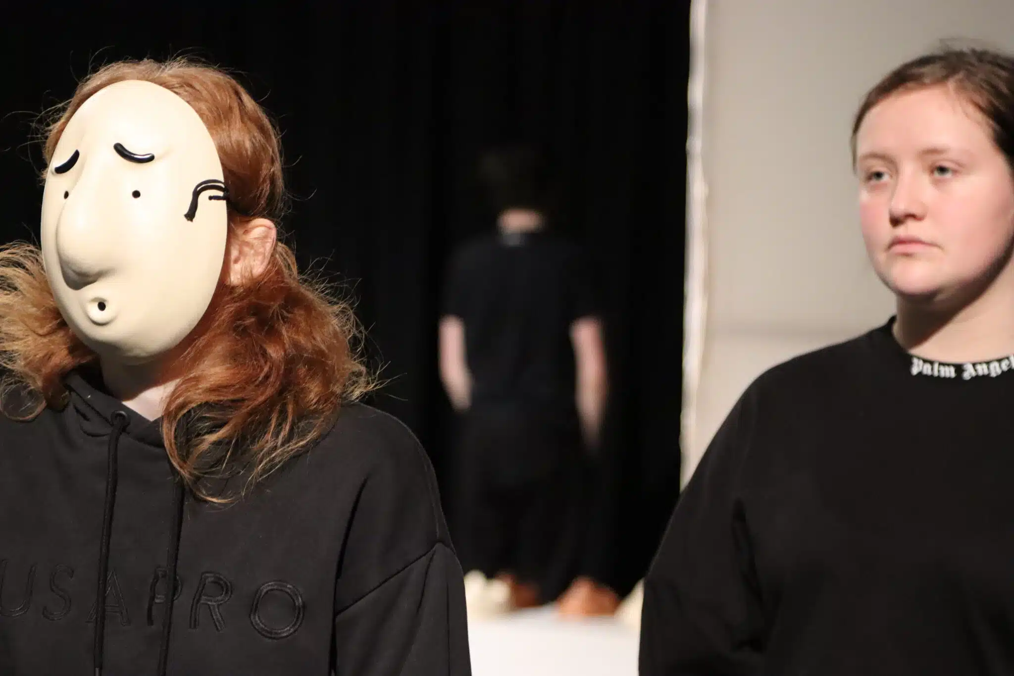 Shaun Casey, Performing Arts Lecturer, explains: “This play was a great opportunity for students to explore physical theatre. One of the methods I used to encourage this was taking away the element of using their facial expressions by incorporating masks. How do you successfully engage your audience and express the emotions you want by only using your body?”